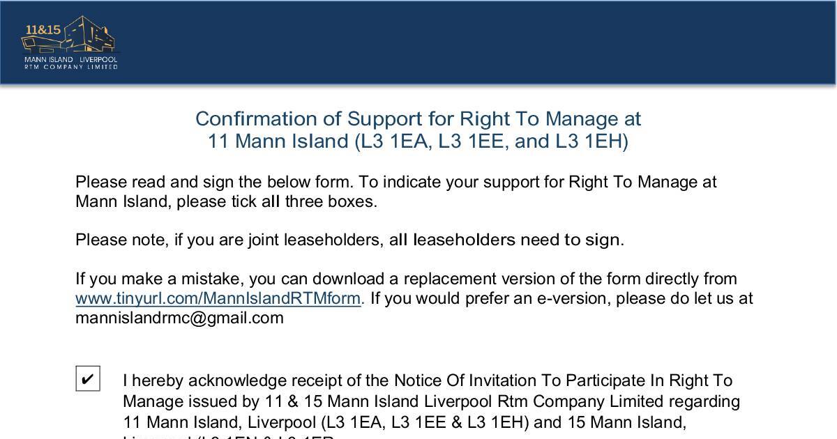 Manage issued by 11 & 15 Mann Island Liverpool Rtm Company Limited regarding