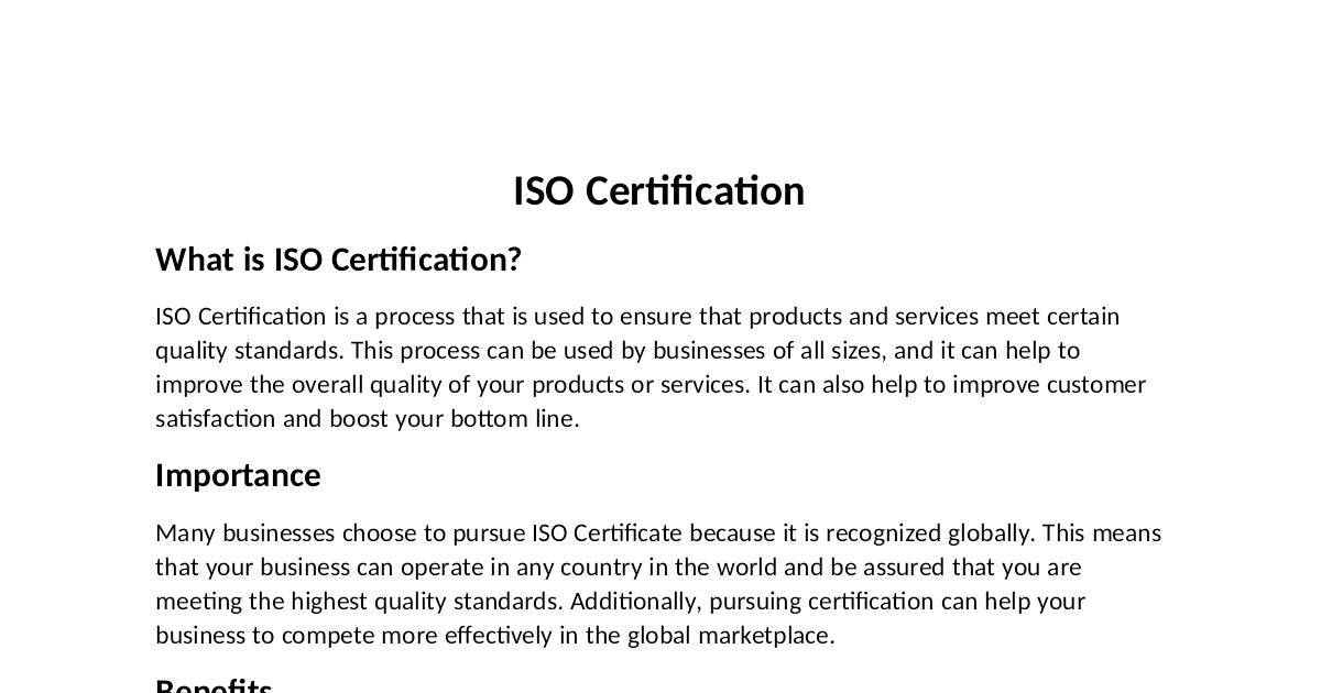 There are many benets of having an ISO Cercate. Some of these benets include: