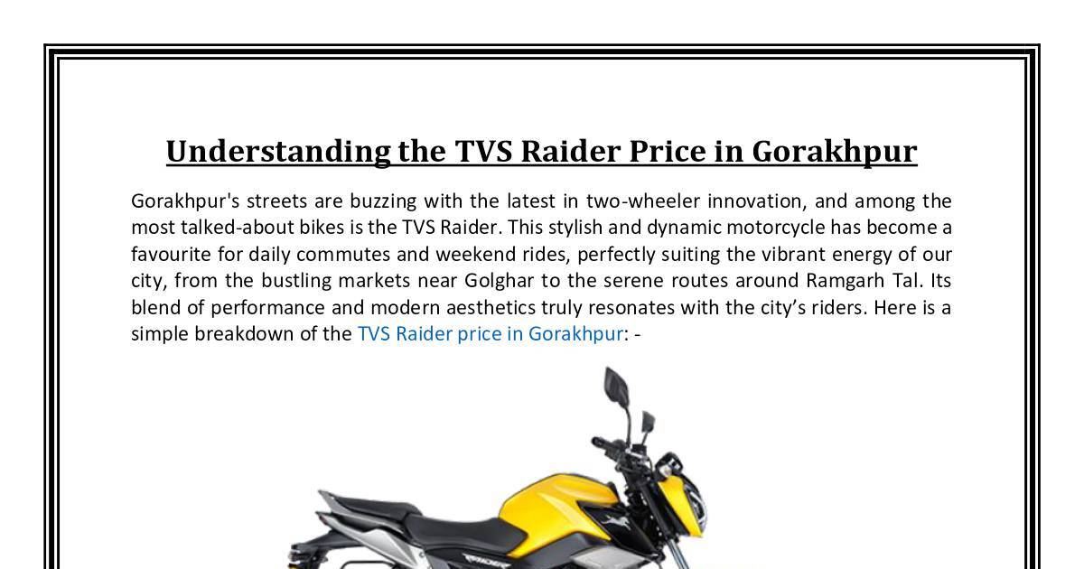 option. As a popular model, understanding the TVS Raider price in Gorakhpur is crucial for