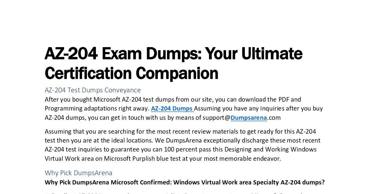 Why Pick DumpsArena Microsoft Confirmed: Windows Virtual Work area Specialty AZ-204 dumps?