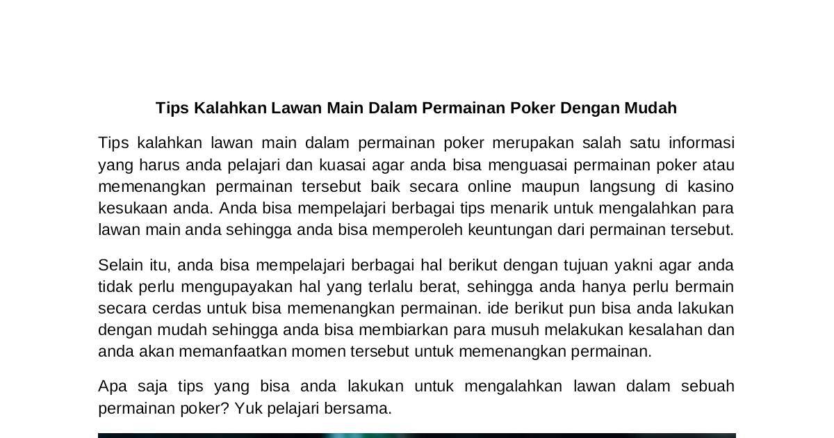 Tips kalahkan lawan main dalam permainan poker merupakan salah satu informasi