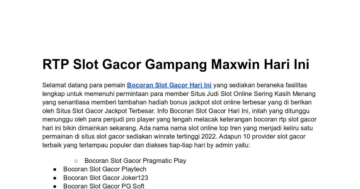 RTP Slot Gacor Gampang Maxwin Hari Ini