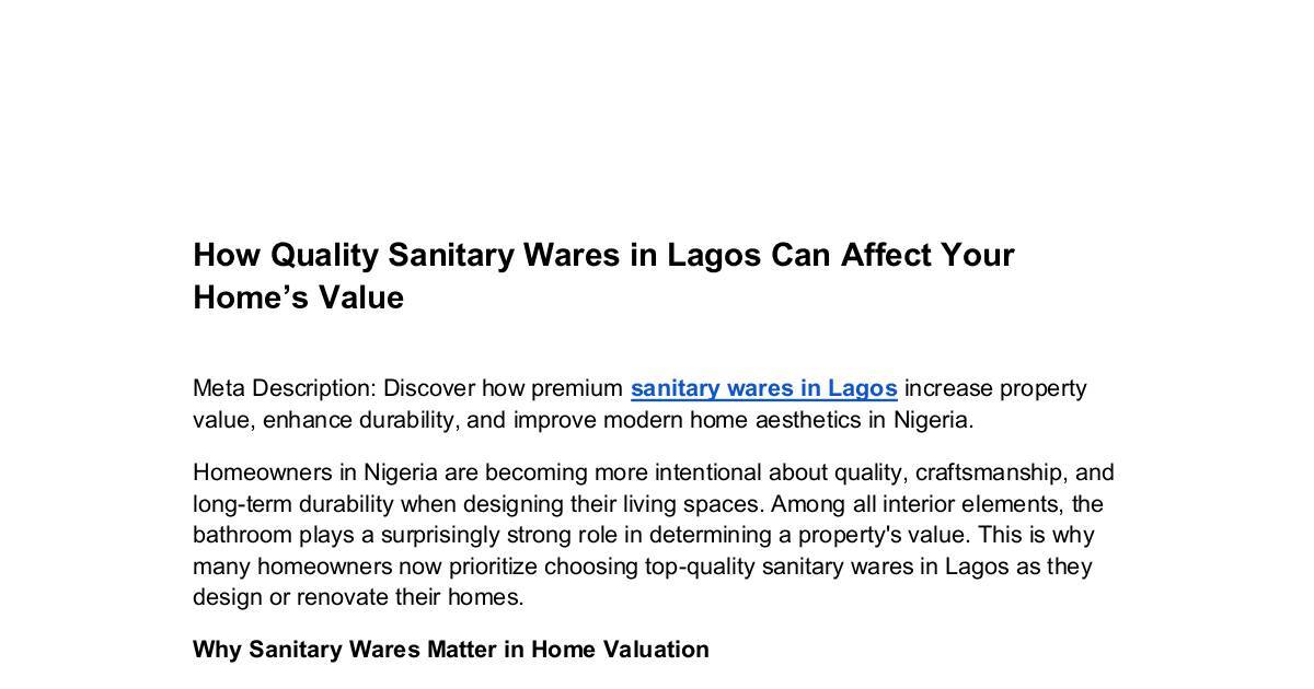 Meta Description: Discover how premium sanitary wares in Lagos increase property