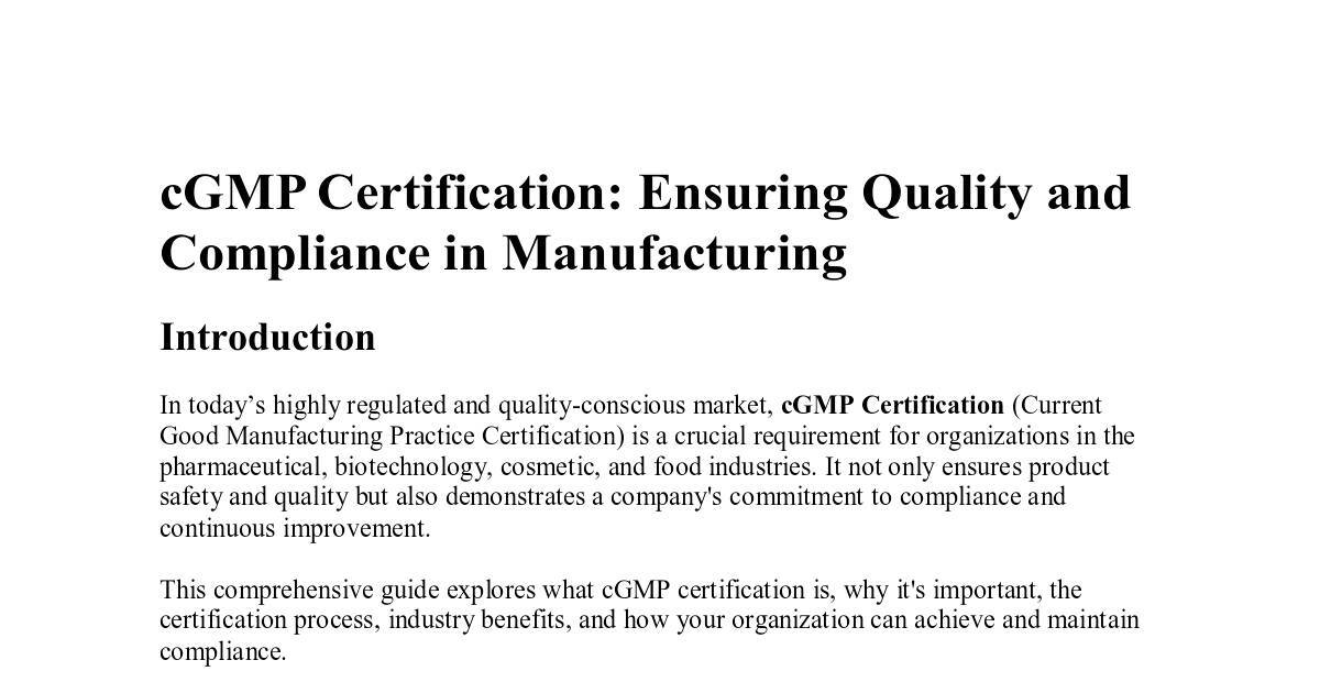 This comprehensive guide explores what cGMP certification is, why it's important, the