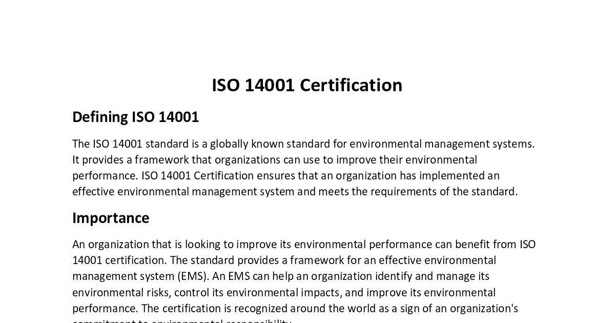 performance. ISO 14001 Certification ensures that an organization has implemented an