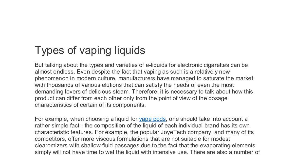 Types of vaping liquids