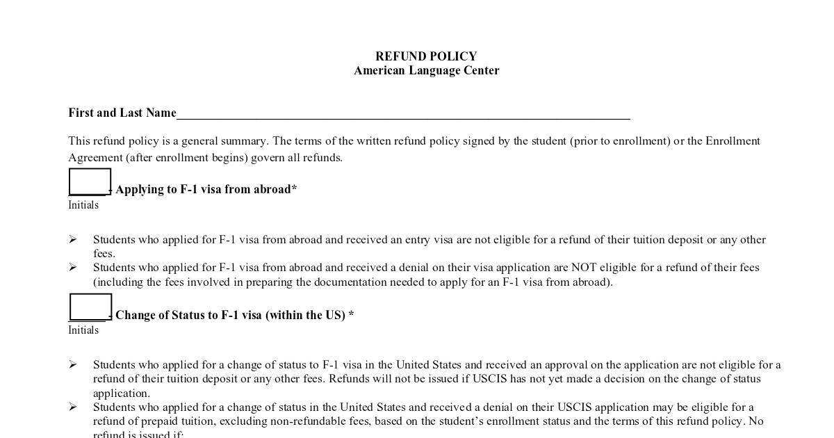 I have read, understood and agree with the American Language Center refund policy