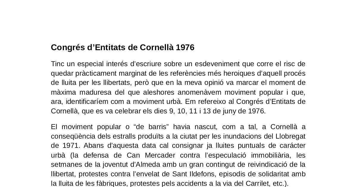 l’esdeveniment que m’ocupa, el Congrés d’Entitats de Cornellà. Si el Manifest