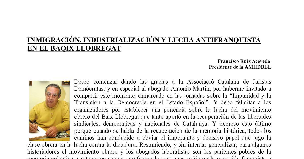 obrero del Baix Llobregat que tanto aportó en la recuperación de las libertades