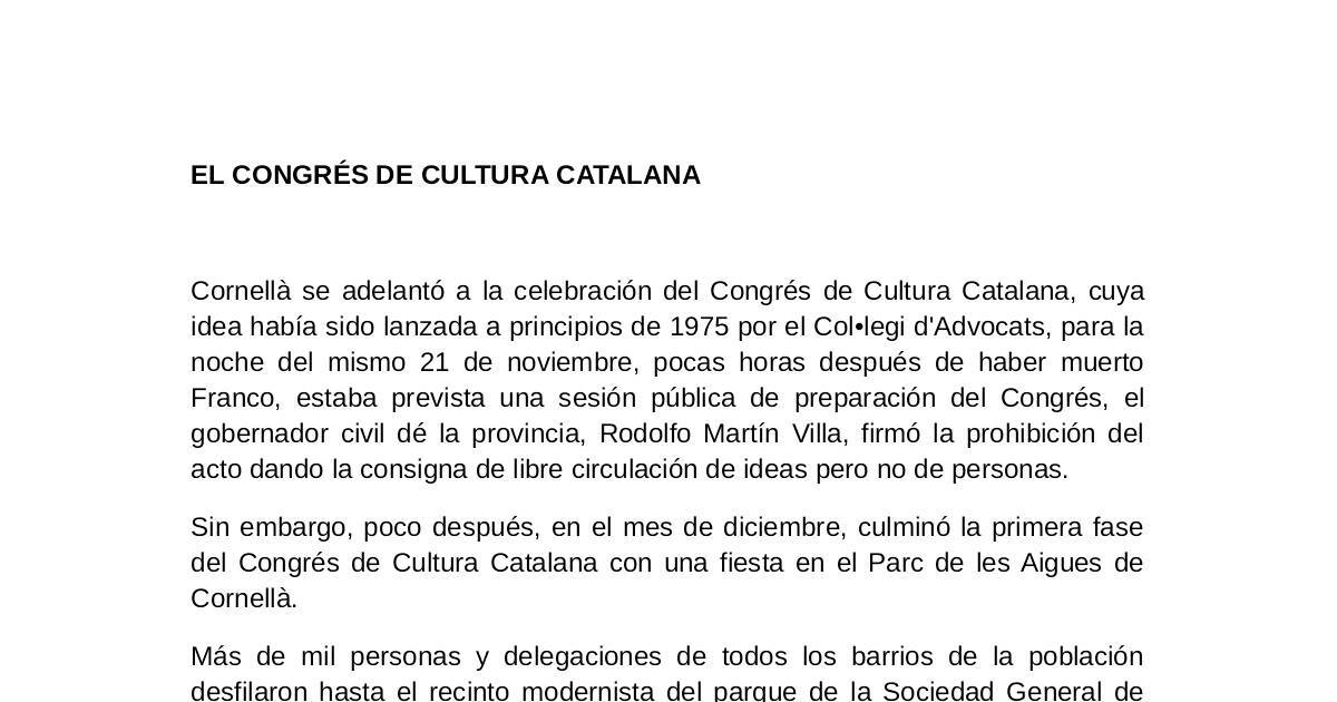 Cornellà se adelantó a la celebración del Congrés de Cultura Catalana, cuya