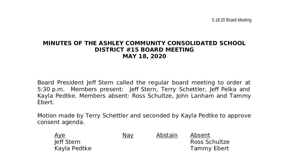 MINUTES OF THE ASHLEY COMMUNITY CONSOLIDATED SCHOOL