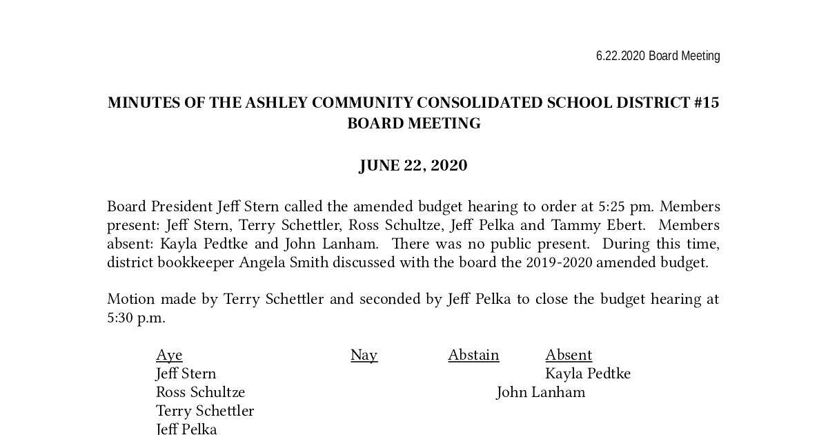 MINUTES OF THE ASHLEY COMMUNITY CONSOLIDATED SCHOOL DISTRICT #15