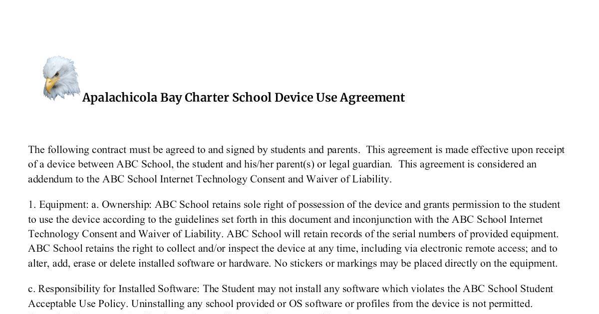 Apalachicola Bay Charter School Device Use Agreement