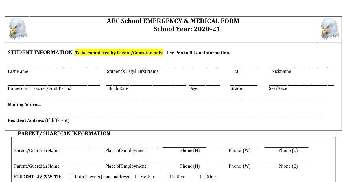 STUDENT INFORMATION To be completed by Parent/Guardian only. Use Pen to fill out information.