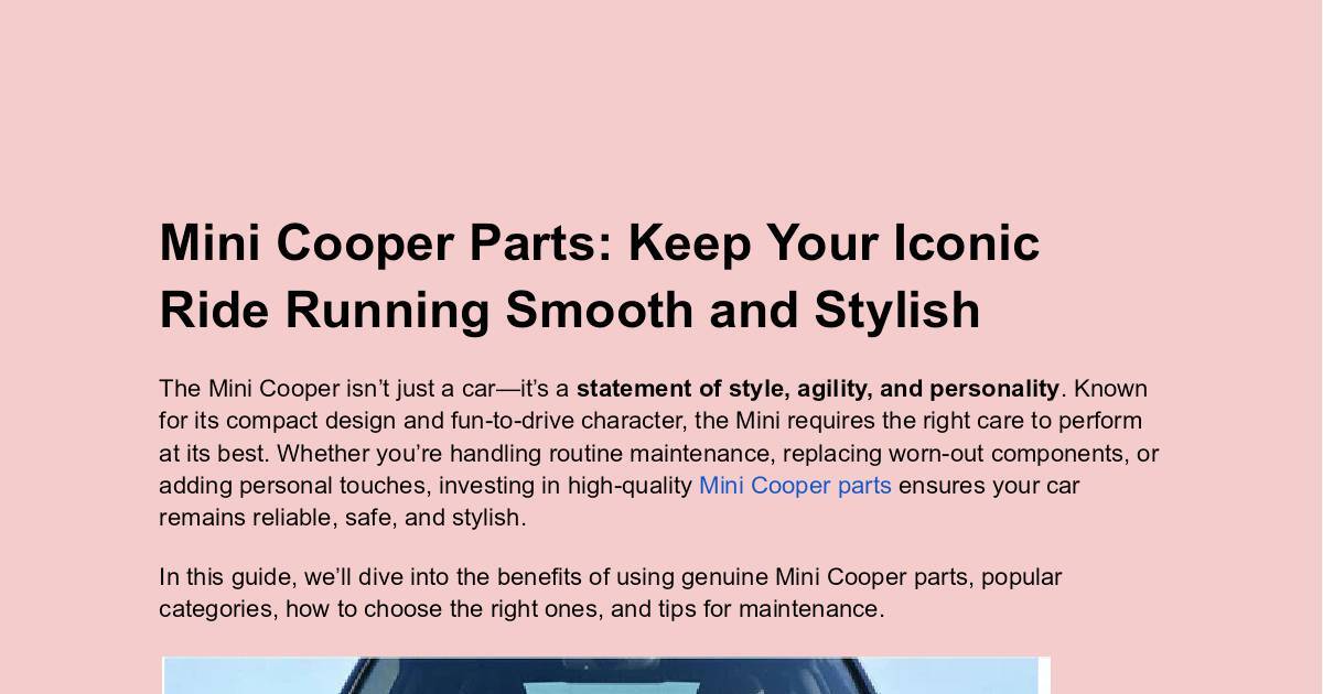 adding personal touches, investing in high-quality Mini Cooper parts ensures your car