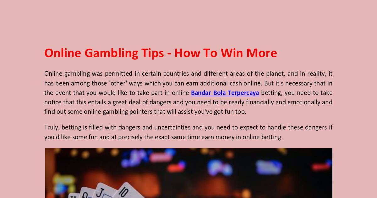 the event that you would like to take part in online Bandar Bola Terpercaya betting, you need to take