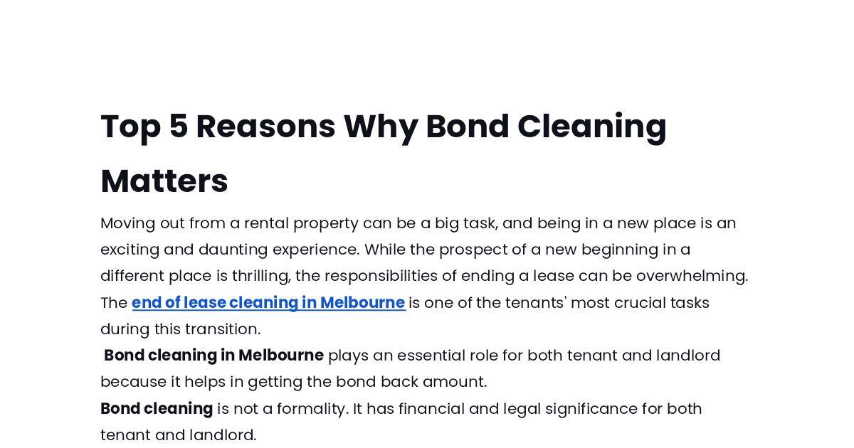 Bond cleaning in Melbourne plays an essential role for both tenant and landlord