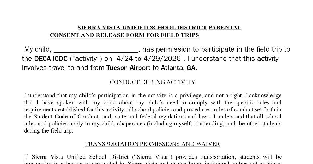 the DECA ICDC (“activity”) on 4/24 to 4/29/2026 . I understand that this activity