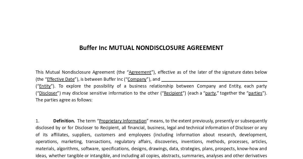 Buffer Inc MUTUAL NONDISCLOSURE AGREEMENT