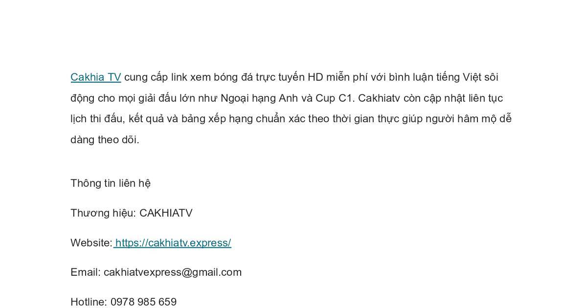 Cakhia TV cung cấp link xem bóng đá trực tuyến HD miễn phí với bình luận tiếng Việt sôi