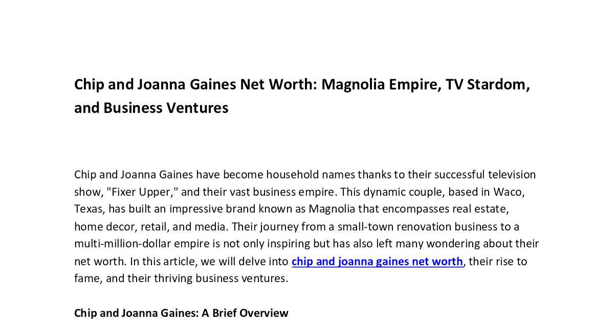 net worth. In this article, we will delve into chip and joanna gaines net worth, their rise to