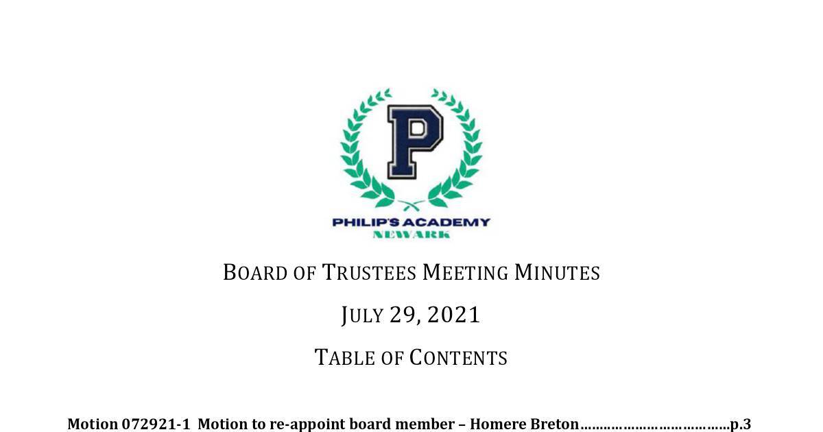 Motion 072921-1 Motion to re-appoint board member – Homere Breton……..…………………………p.3