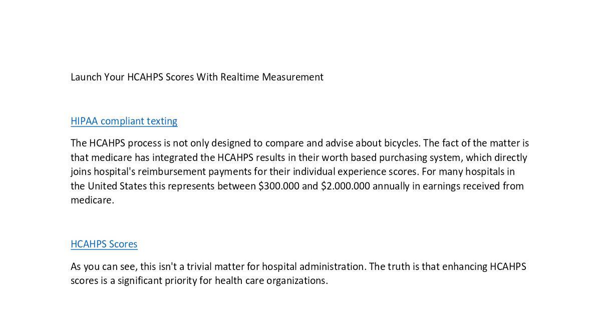 The HCAHPS process is not only designed to compare and advise about bicycles. The fact of the matter is