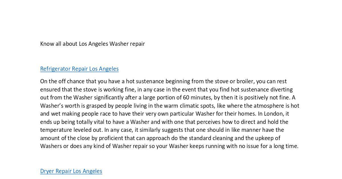 Know all about Los Angeles Washer repair
