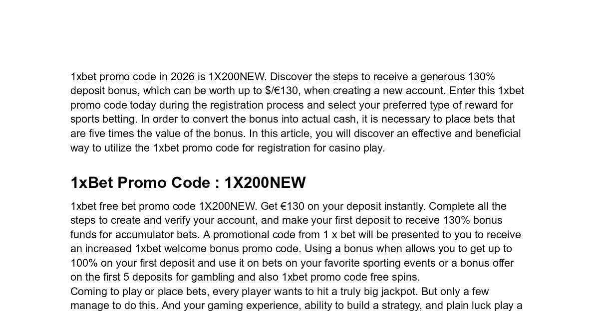 1xbet promo code in 2026 is 1X200NEW. Discover the steps to receive a generous 130%