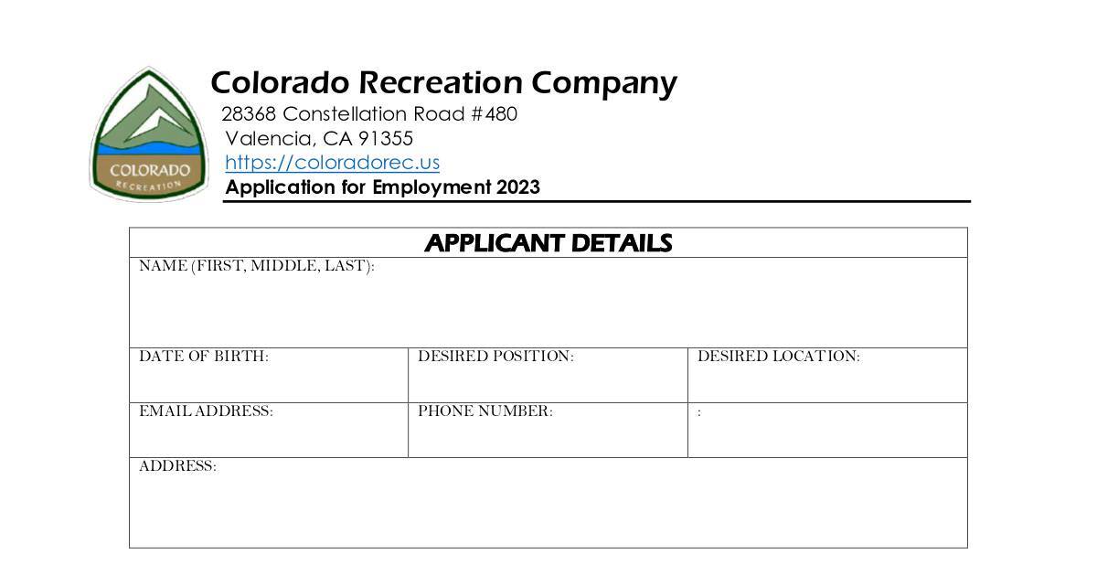 Application for Employment 2023
