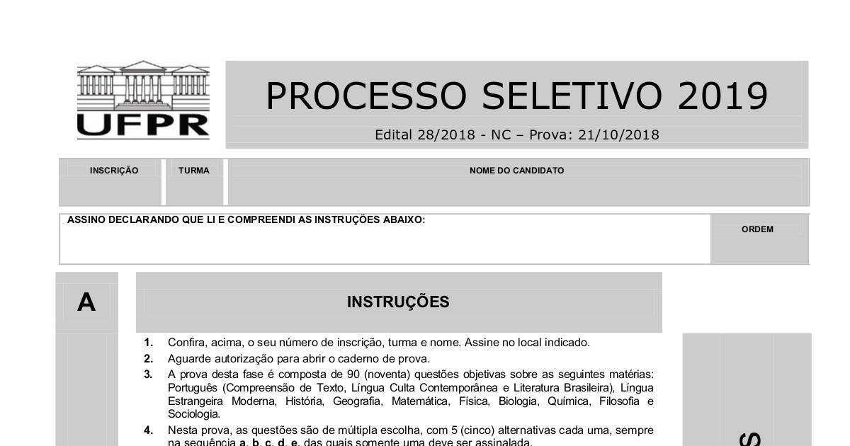 1. Confira, acima, o seu número de inscrição, turma e nome. Assine no local indicado.