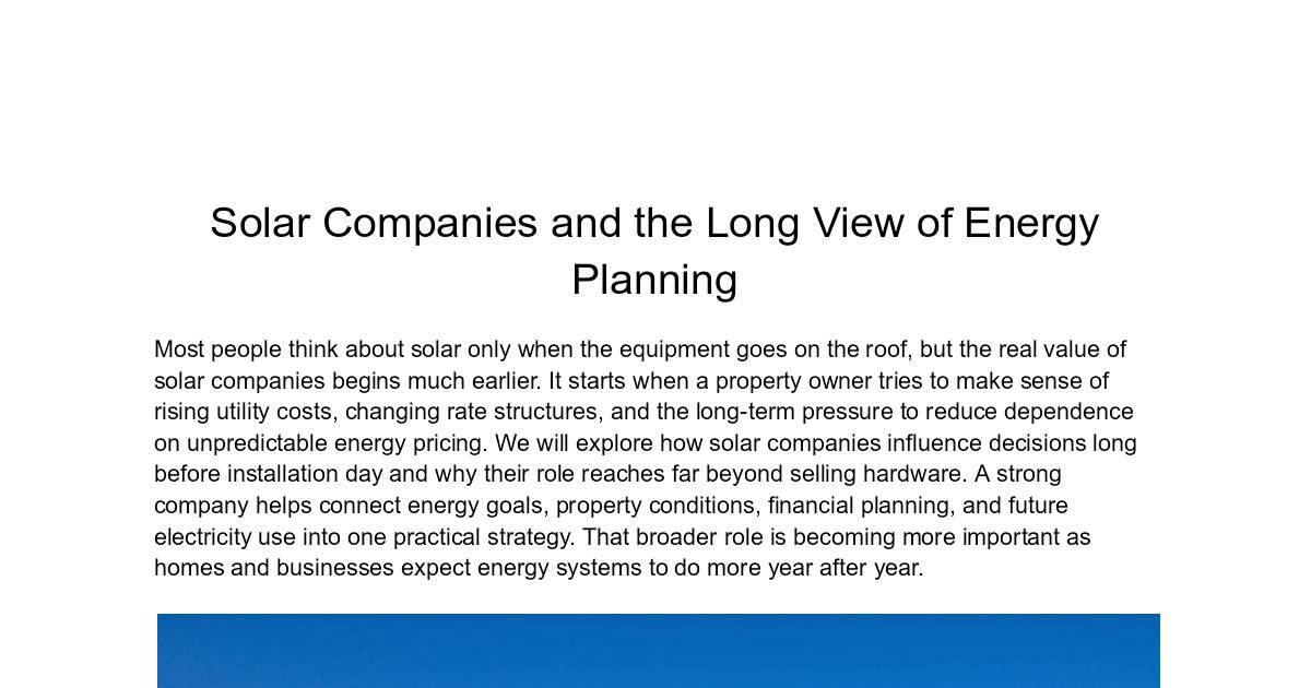 solar companies begins much earlier. It starts when a property owner tries to make sense of