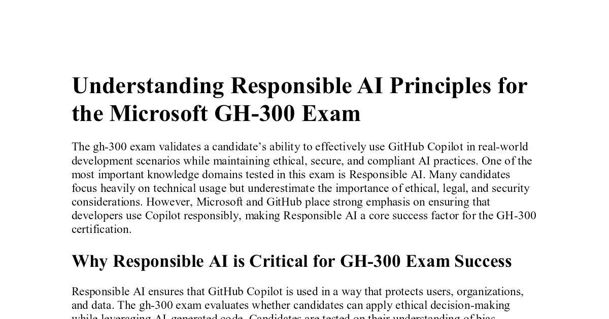 developers use Copilot responsibly, making Responsible AI a core success factor for the GH-300