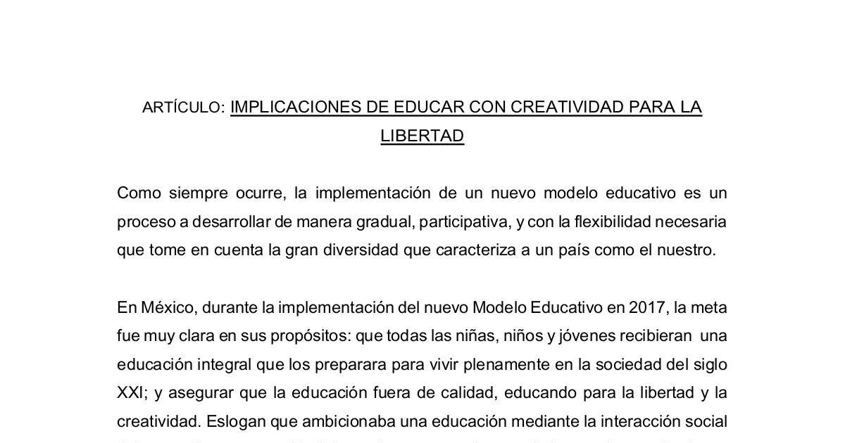ARTÍCULO: IMPLICACIONES DE EDUCAR CON CREATIVIDAD PARA LA