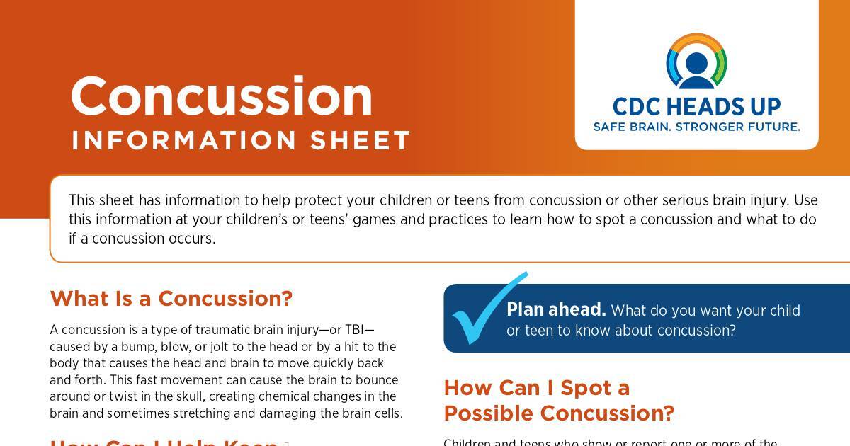 this information at your children’s or teens’ games and practices to learn how to spot a concussion and what to do