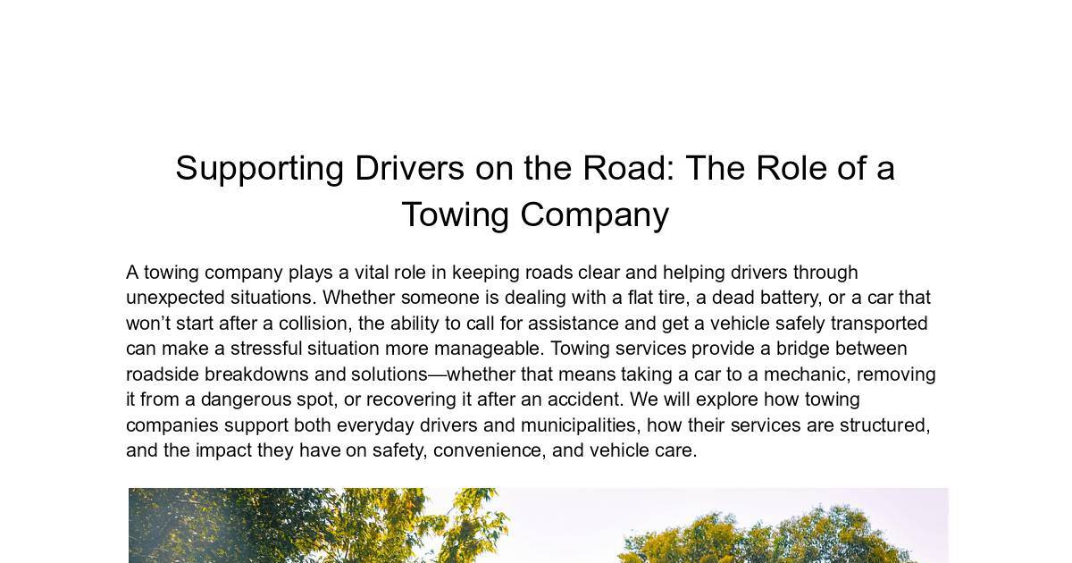 A towing company plays a vital role in keeping roads clear and helping drivers through