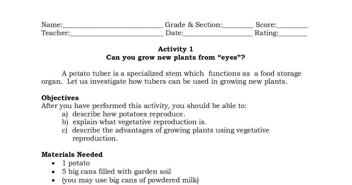 organ. Let us investigate how tubers can be used in growing new plants.