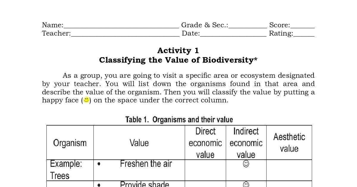 describe the value of the organism. Then you will classify the value by putting a