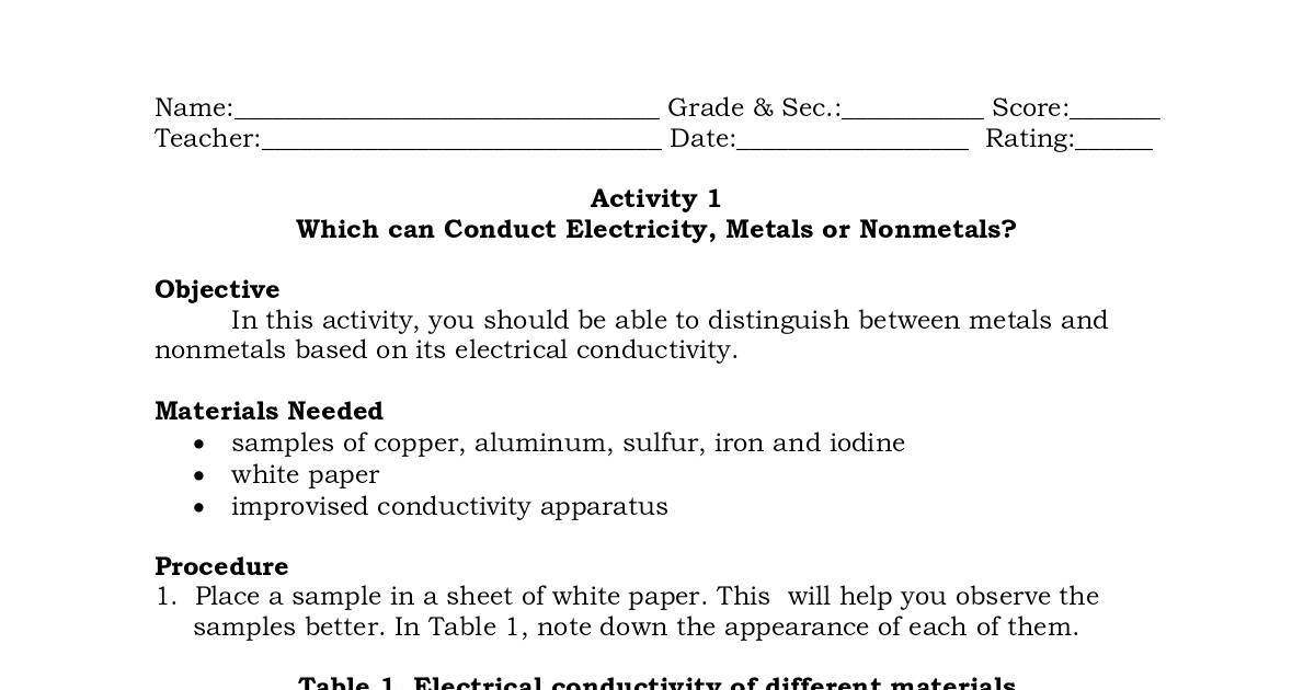 Q2. Which of the samples are electrical conductors? Which are not? Note them
