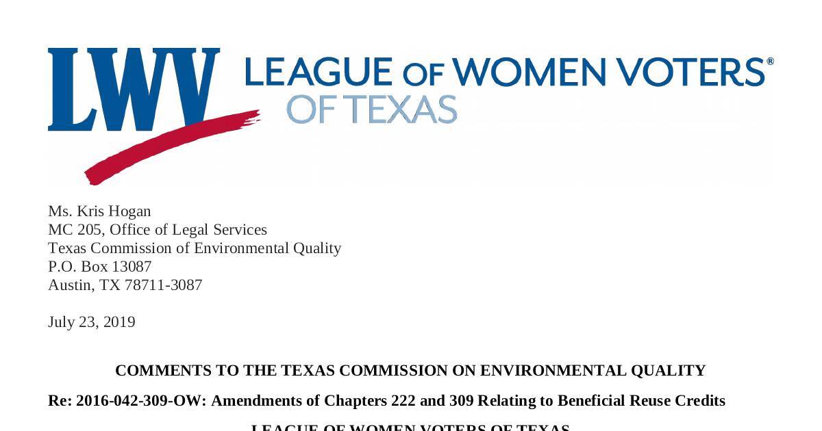 The League of Women Voters of Texas appreciates the opportunity to comment on the proposed rule changes