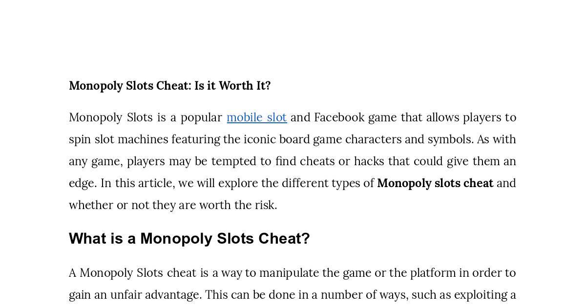 edge. In this article, we will explore the different types of Monopoly slots cheat and
