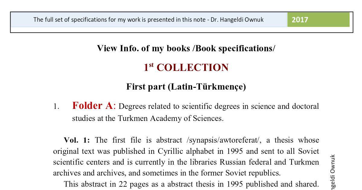 scientific centers and is currently in the libraries Russian federal and Turkmen