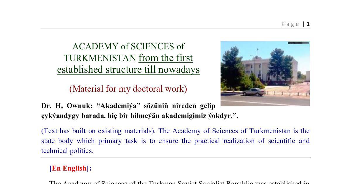 (Text has built on existing materials). The Academy of Sciences of Turkmenistan is the