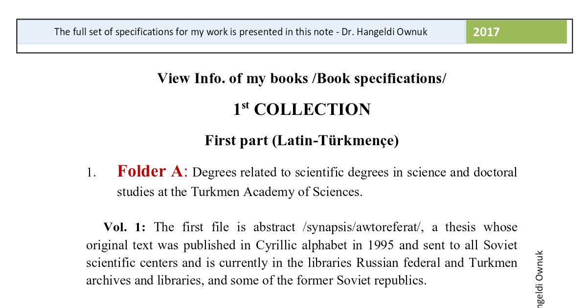 scientific centers and is currently in the libraries Russian federal and Turkmen