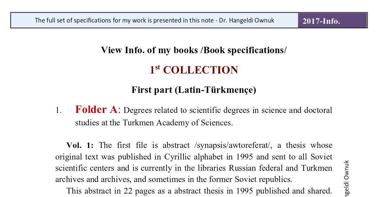 scientific centers and is currently in the libraries Russian federal and Turkmen