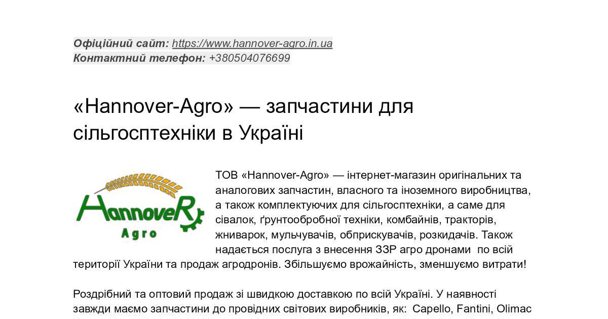 Офіційний сайт: https://www.hannover-agro.in.ua