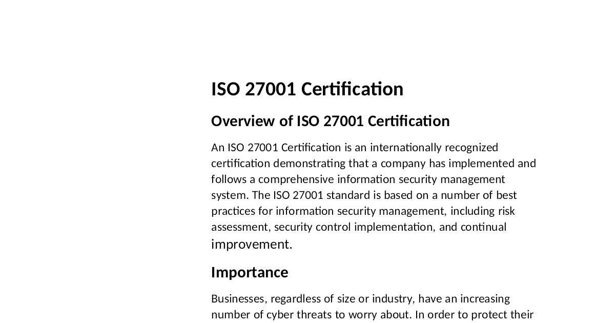 Overview of ISO 27001 Cercaon
