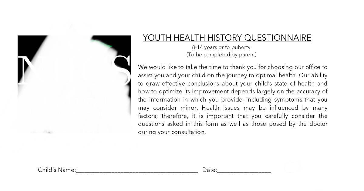 YOUTH HEALTH HISTORY QUESTIONNAIRE
