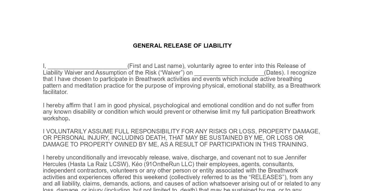 GENERAL RELEASE OF LIABILITY