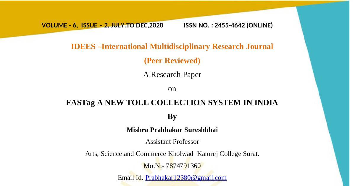This paper mainly focused on FASTag effectiveness in India. It is one new mechanism for